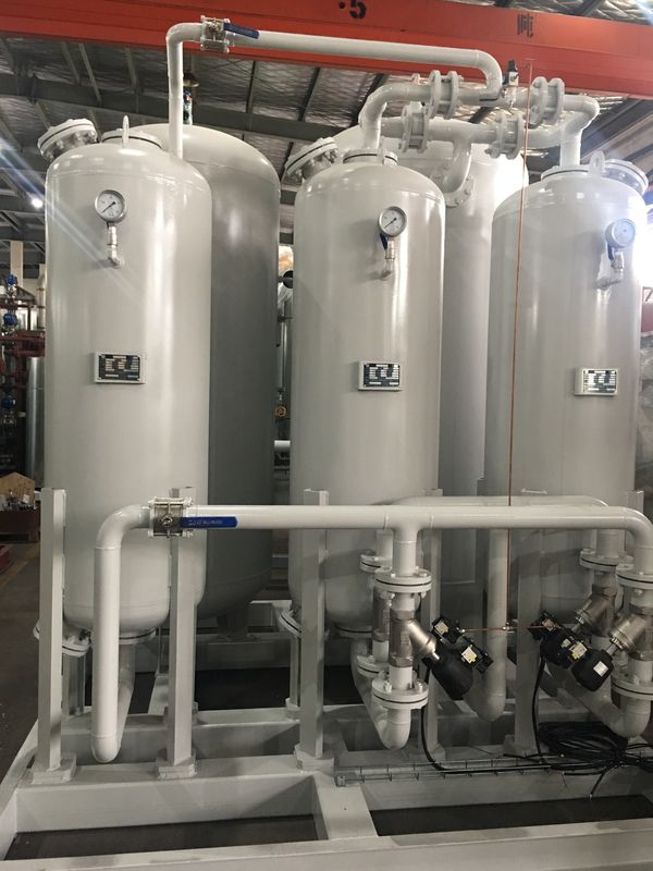 يتم تمرير الهواء المضغوط من خلال وحدة PSA برج التوأم متصلة ببعضها البعض مع صمامات التبديل التلقائي. بعد مرورها من خلال مجفف مبرد ، يتم تجفيف الهواء.الهواء المضغوط المجفف يأتي بعد ذلك في اتصال مع السرير من المجرفة الجزيئية زيليت (ZMS)، التي تمتص بشكل تفضيلي جزيئات النيتروجين.